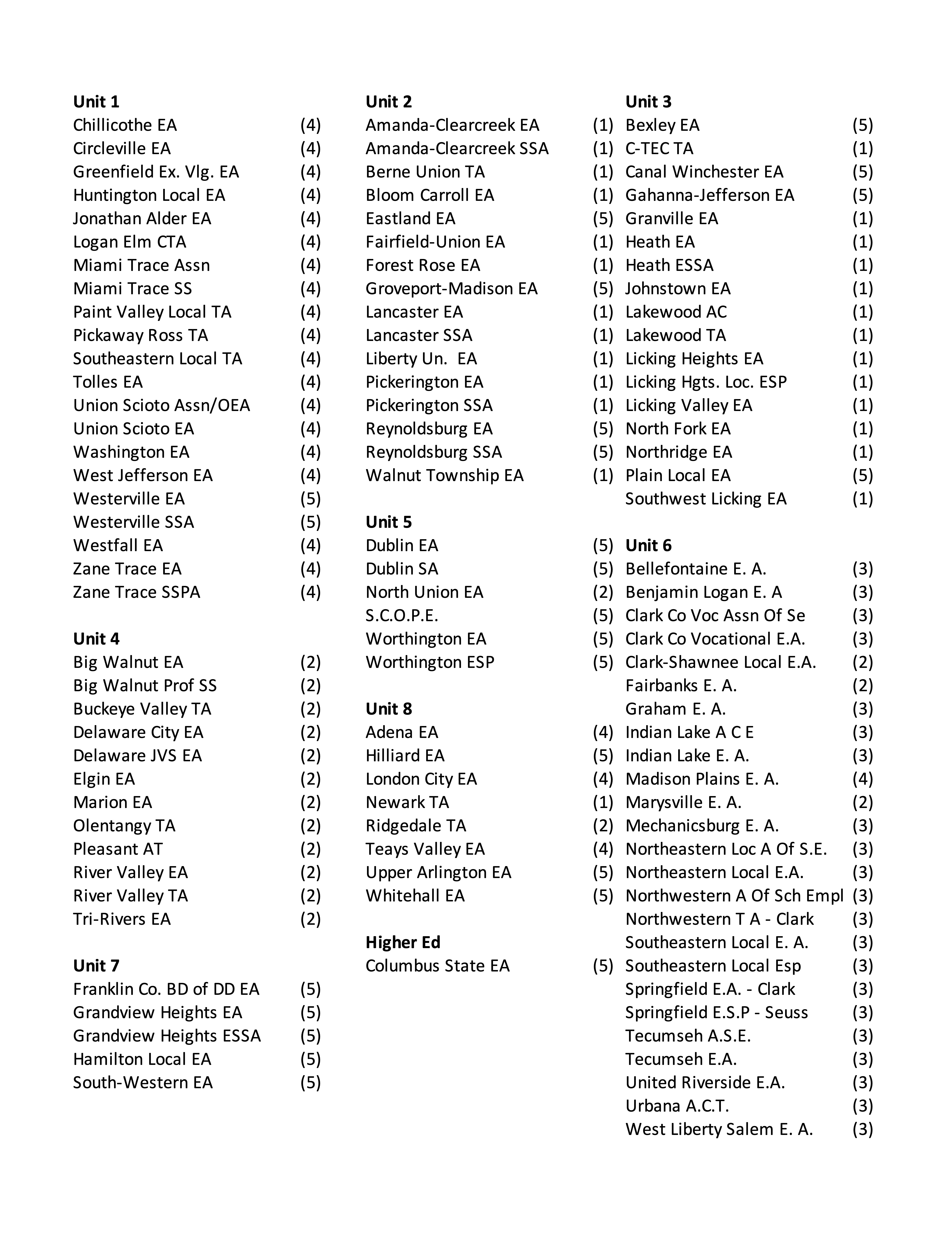 OEA Units Central OEA/NEA encompasses 8 OEA units. Each unit is represented by an elected OEA Board of Directors member, who serve on the Central Executive committee.